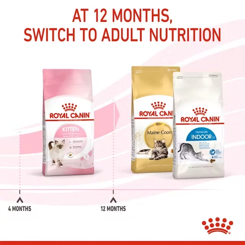 توصیه میشود پس از رسیدن گربه به سن 12 ماهگی، فرآیند تغییر رژیم غذایی به تدریج آغاز شود. محصول جایگزین باید غذای مخصوص گربههای بالغ Royal Canin (به صورت خشک یا مرطوب با بافتهای سُس، ژله یا موس) باشد. |